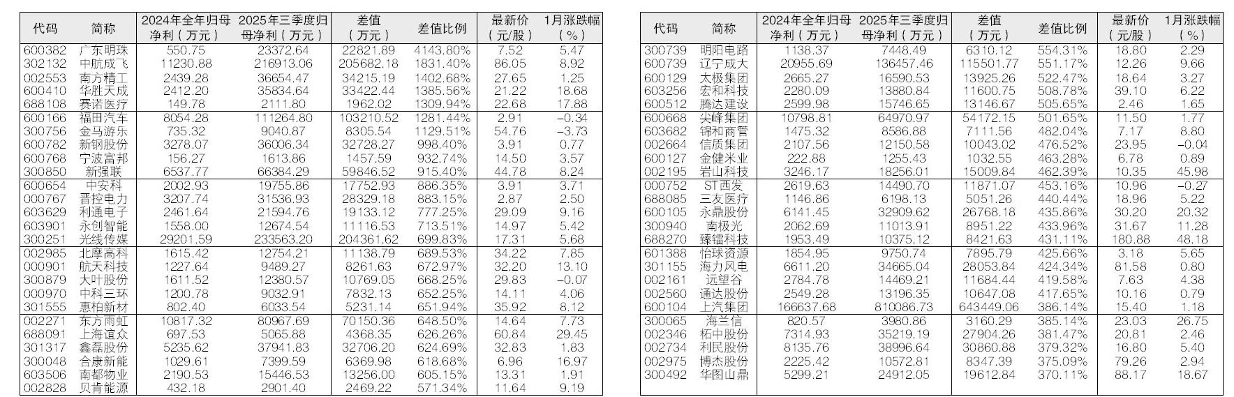 近日,年报预增股频频受到资金关注。《大众证券报》编辑以2025年三季度、2024年全年归母净利均大于0,2025年三季度归母净利大于2024年全年归母净利,差值比例高于370%,尚未披露预告为标准个人配资网,筛选出51只潜在年报预增股供投资者参考。